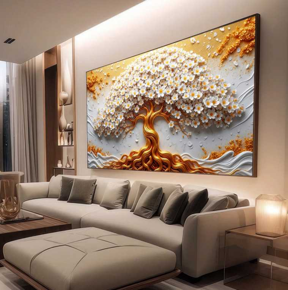 QUADRO ARTE ÁRVORE ABSTRATA COM TONS DOU...